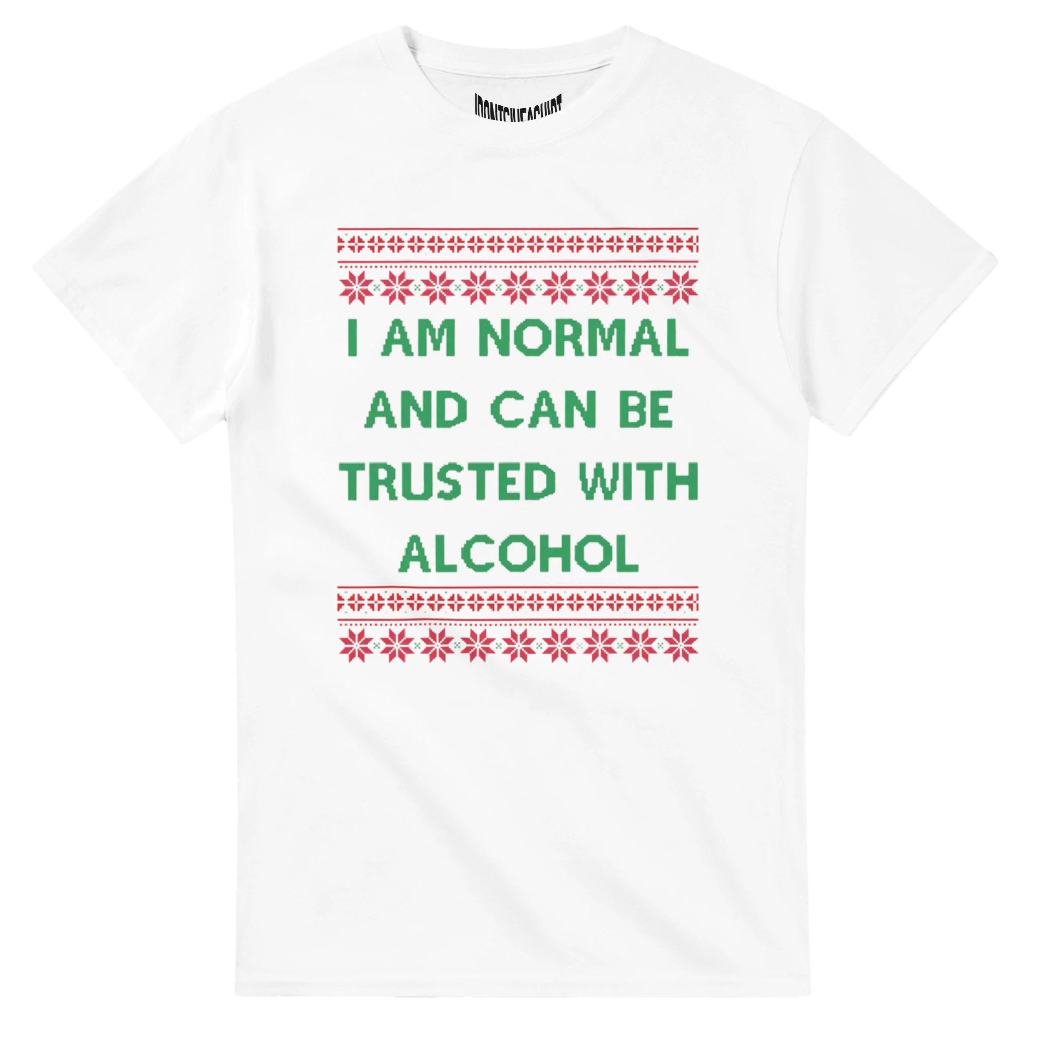 Have a laugh this holiday season with this playful tee! I am normal and can be trusted with alcohol – the perfect statement for festive parties and cozy gatherings. Made from 100% soft cotton, it's comfortable, stylish, and sure to spark smiles wherever you go. Cheers to fun, friends, and holiday vibes!